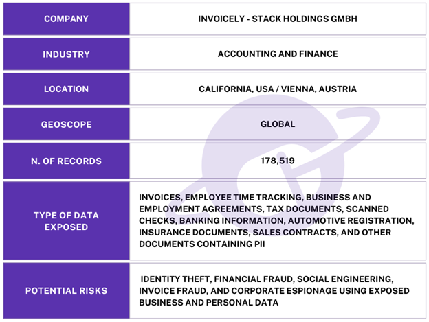Information inside the database and the name of the database itself indicated the records belonged to Invoicely by Stack Holdings GmbH, a Vienna-based SaaS portfolio company. I immediately sent a responsible disclosure notice to Invoicely using their support ticketing system, and the database was restricted from public access and no longer accessible within hours. Although the records appeared to belong to Invoicely, it is not known if the database was owned and managed directly by them or by a third-party contractor. It is also not known how long the database was exposed before I discovered it or if anyone else may have gained access to it. Only an internal forensic audit could identify additional access or potentially suspicious activity. I did not receive any reply to my responsible disclosure notice.